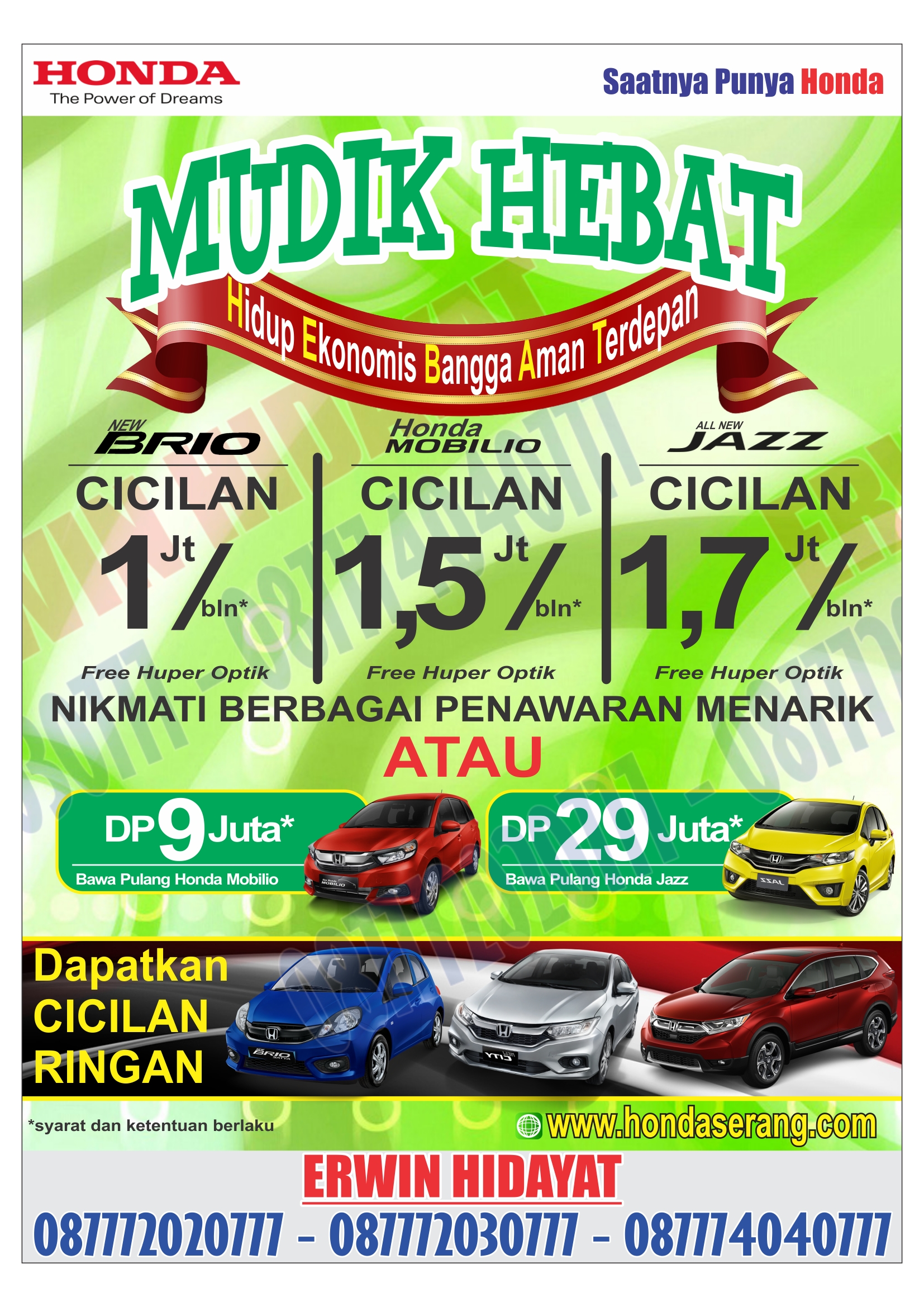 Hubungi: Erwin Hidayat (087772020777, 087774040777)